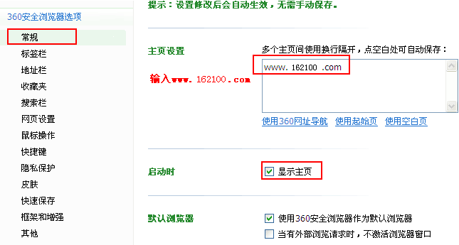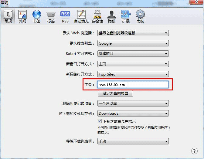 2)然后在打开的对话窗口中的主页设置的地址输入框中输入“http://www.xj0311.cn/”设置修改后会自动生效,无需手动保存。如图所示: