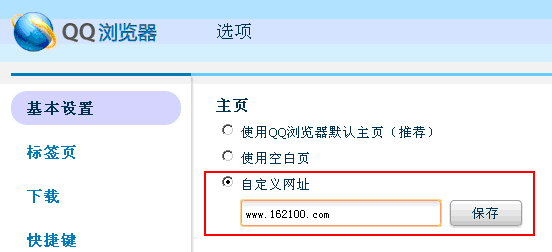 2)然后在打开的对话窗口中选择“自定义网址”并输入“http://www.xj0311.cn/”,然后点击“保存”按扭即可,如图所示: