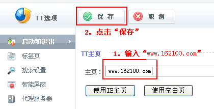 2)然后在打开的对话窗口中的主页栏的地址输入框中输入“http://www.xj0311.cn/”,然后点击窗口上方的“保存”按扭即可,如图所示: